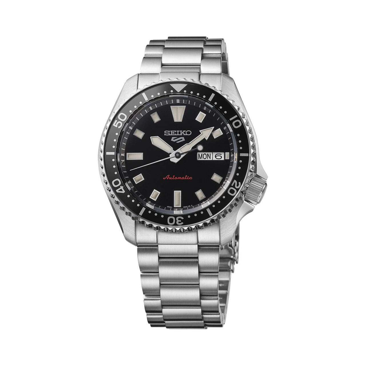 Show your style. Make your move. Since the 1960s, Seiko 5 Sports has delivered consistently high levels of reliability, durability, and performance. Paying homage to Seiko’s iconic SKX models of the past, this creation inherits the layout of the original, featuring indexes with a rich texture and hands with a distinct, yet refined design. For dependable timekeeping in your everyday life, this exceptional watch is powered by an automatic movement with a power reserve of approximately 41 hours and is equipped with a day/date calendar, LumiBrite hands and markers, and a see-through caseback. Crafted of stainless steel, this versatile timepiece displays a deep black dial framed by a coordinating rotating bezel with a glossy Hardlex insert for a sophisticated feel. Water resistant to 100 meters, the Seiko 5 Sports collection is perfect for your style no matter what your day has in store.